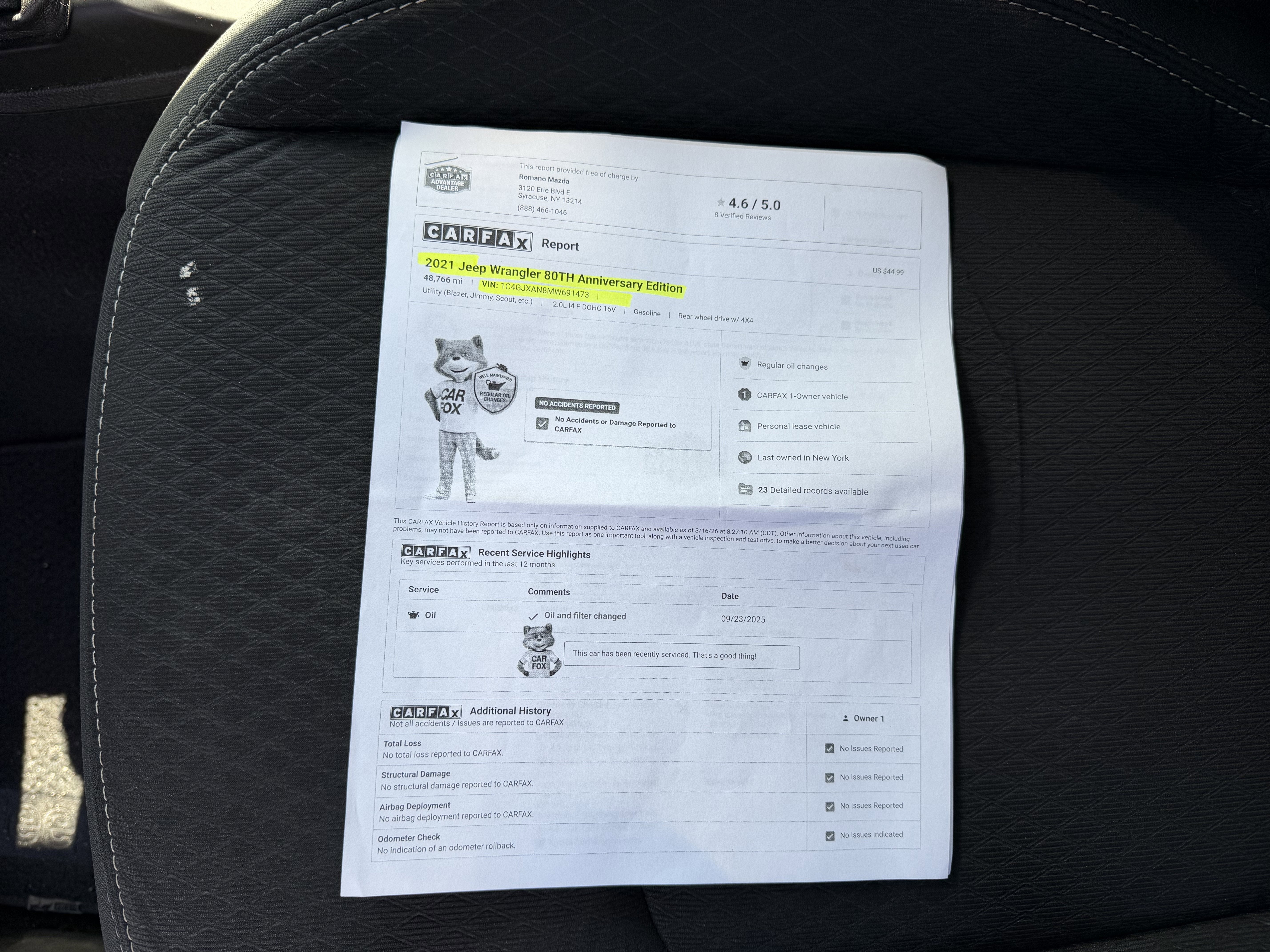 All pre-owned vehicles at Romano Mazda come with an CARFAX Vehicle History Report in the glove box, and a repair order that indicates all service repairs that have been performed by ASCE Certified technicians on the vehicle. All of our pre-owned vehicles are gassed and ready for test drive. All of our pre-owned vehicles undergo a rigorous 160-point inspection to help you save time and money. All trades are welcome. You mean business and so do we!